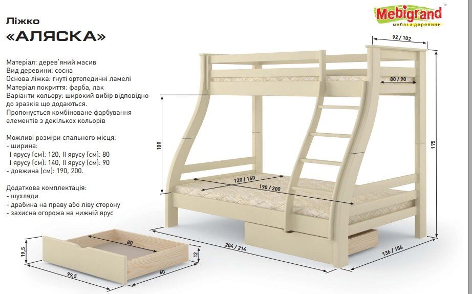 Компактное размещение трех спальных мест в комнате предлагает фабрика Мебигранд, выпустив красивую и оригинальную кровать из дерева сосны Аляска.Вы можете двухъярусная кровать купить в спальню для троих детей разного возраста и тогда в комнате будет гораздо больше места для игр или другой нужной мебели, а можете для молодой семьи с маленьким ребенком, ведь благодаря близкому расположению спальных мест родители смогут всегда контролировать своего малыша.