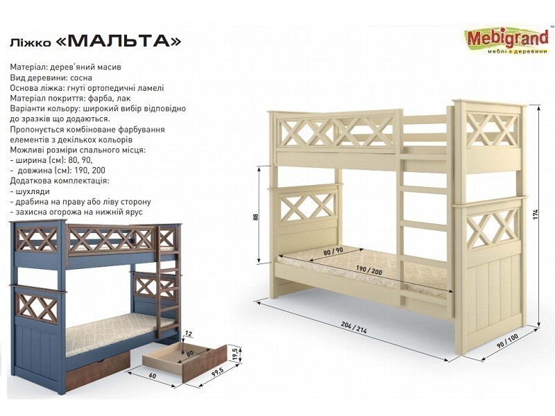 Красивая и изящная конструкция двухъярусной кровати Мальта в комбинации цветов Белый или Синий с цветом Темный орех или однотонная из представленных разнообразных оттенков украсит спальню ваших детей, создаст условия и атмосферу для здорового и безопасного сна. Для этой модели предлагается широкая палитра цветов — ольха, светлый орех, яблоня, махонь, венге, белый, айвори и ряд более ярких расцветок