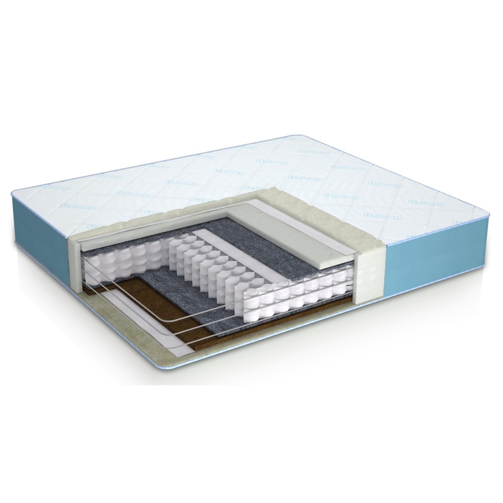 Слои наполнения Softex хлопок / Защитное полотно SpanGuard / Латексованна хлопок / ThermoFelt / пружинный блок Pocket Spring 14 см / ThermoFelt / Кокосовая койра (1000 гр. / М2) / Softex хлопок / Защитное полотно SpanGuard / Softex шерсть