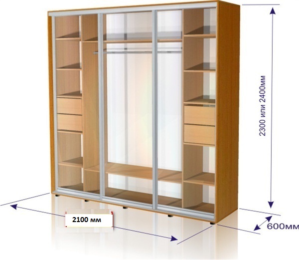 Длина шкафов от 900мм до 5000мм, глубина от 300мм до 600 мм, высота до 2600мм(возможно изготовление по индивидуальным размерам)