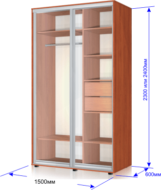 Колір: на вибір. Стандартна серія – яблуня, дуб шамоні, дуб трюфель, дуб сонома, горіх лісовий, горіх темний, вільха, венге темний Колір люкс-кантрі, аляска, індастріал,морас, дуб крафт білий, дуб клондайк - плюс 5% до вартості у стандартному кольорі Довжина шаф від 900 мм до 5000 мм, глибина від 300 мм до 600 мм, висота до 2600 мм (можливе виготовлення за індивідуальними розмірами) Профіль-срібло...можливо зміни кольору профілю світле золото, бронза, венге, білий За вашим бажанням можлива комплектація висувними ящиками 2-ящика-450грн (напрямні повного висування) на дзеркало можна нанести піскоструминний малюнок - 250грн (1 фасад), фотодрук або оракал - від 350грн - 1 фасад