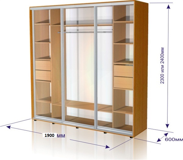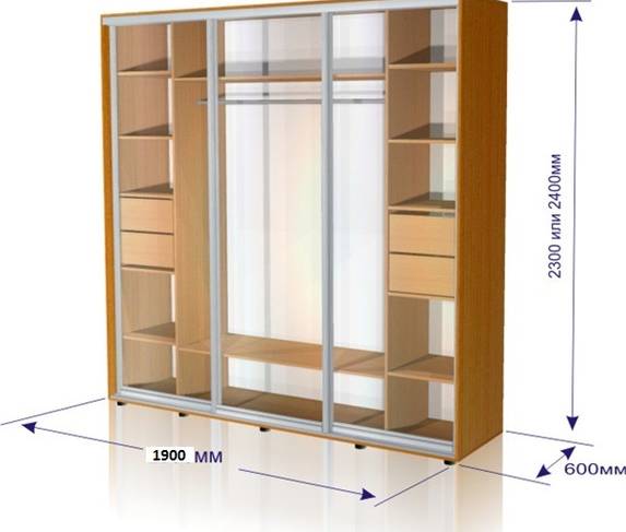 Шафа-купе 1900- 3 фасада+ 2 ряди полок