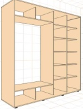 Можливі варіанти дзеркал-срібло або бронза (1 фасад -400грн) Можливо: зміна висоти та глибини шафи, кратна 5см, комплектація додатковими полицями, штангами та мікроліфтами, карнизом та підсвічуванням. Шафа комплектується регульованими ніжками, висотою 30мм (можливо 5см) Задня стінка: ДВП 3 мм білого кольору ДСП: 16 мм, Можливе виготовлення за індивідуальними розмірами